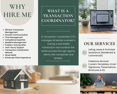 In addition to transaction support, we also offer freelance services to elevate your business presence, including custom templates, email signatures, presentations, brochures, and more—helping your brand look polished and professional online and beyond. ✨